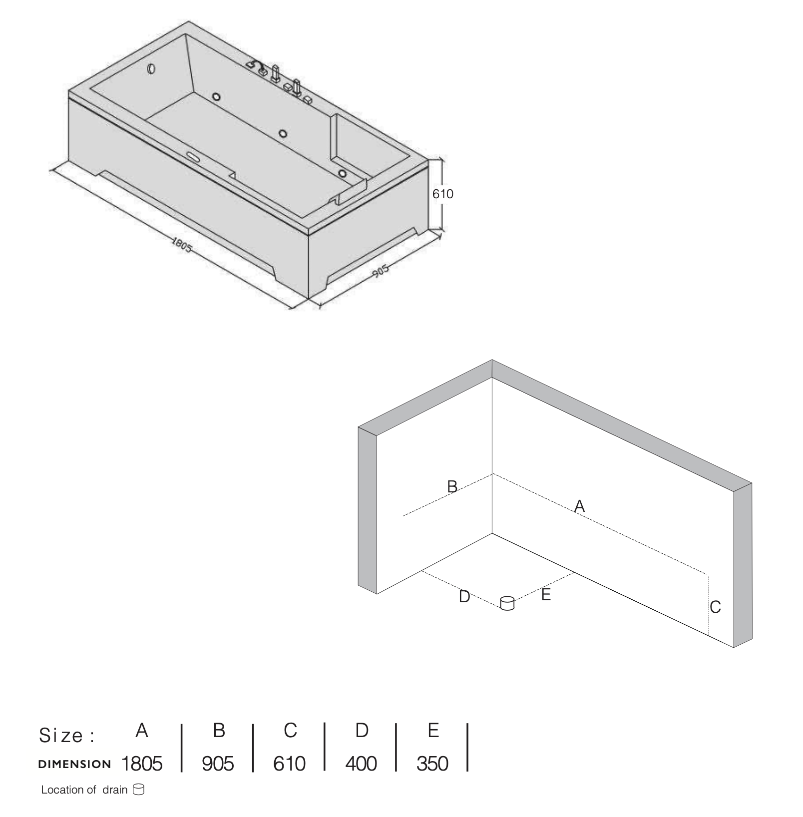 1805 X 905 X 610 MM